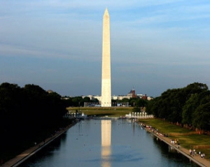 Монумент Вашингтона был воздвигнут между Белым Домом и Капитолием в 1884 году. Строительство обелиска длилось 36 лет. Сооружение, выполненное по проекту архитектора Роберта Миллса, выполнено из гранита и облицовано мрамором. Весит обелиск 91 тысячу тонн.