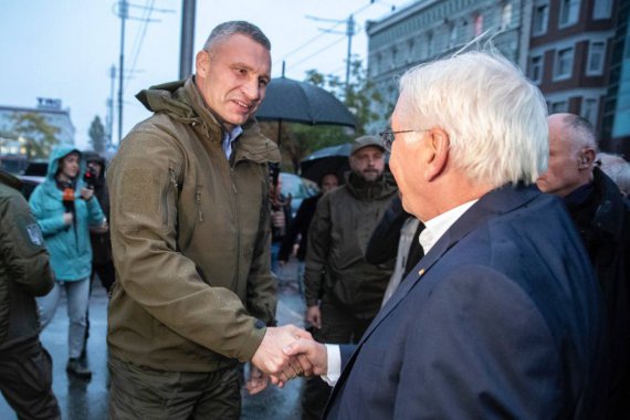 Кличко показал президенту Германии последствия террористических атак российских варваров в центре Киева.