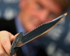 Достал нож и, угрожая продавщице, начал требовать деньги. 24-летняя девушка успела перехватить его руку с ножом, а второй нажала тревожную кнопку.