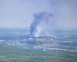 На месте удара появился огромный столб черного дыма. Видео было обнародовано в Telegram.