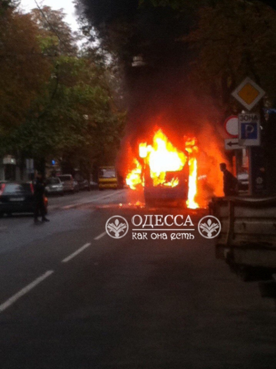 Сегодня, 27 сентября, в Одессе в районе пересечения улиц Екатерининской и Еврейской загорелась маршрутка.