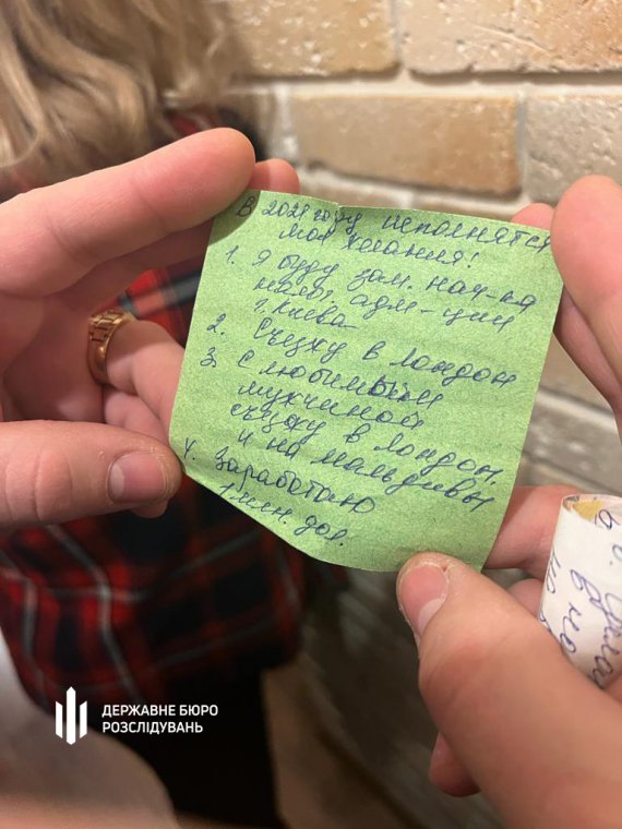 Во время обыска у женщины обнаружили несколько списков желаний к 2018 и 2021 Новому году. Об этом сообщает пресс-служба ГБР.
