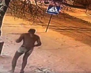В центре города он попал в объектив камеры наблюдения муниципальной стражи. На видео видно, как он в одном нижнем белье качается на тротуаре, а затем погружается в снег головой. Видно, что он от процесса получает немалое удовольствие и пританцовывает.