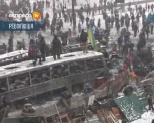 Как говорилось в эфире Эспрессо ТВ, митингующие перевернули 2 автобуса и вернули их к Европейской площади, однако автомобилей для баррикады не достаточно.