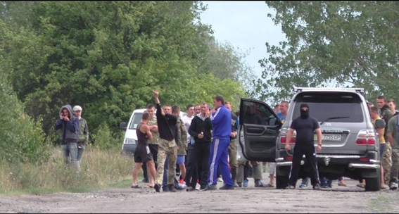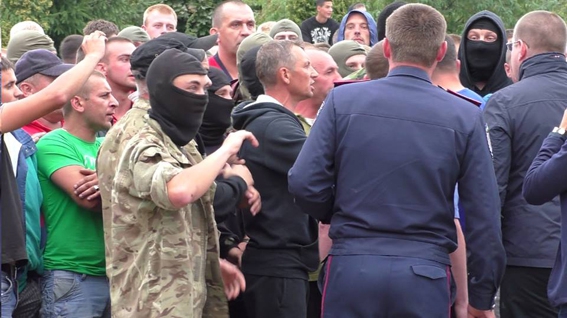 На помощь коллегам выехали бойцы "Грифона", спецназовцы и нацгвардийци, которых сразу окружила почти сотня местных.