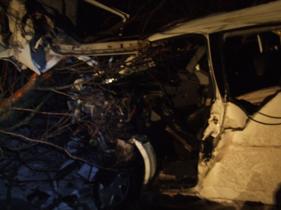 В воскресенье, 9 февраля, поздно вечером на дороге в селе Пидлосцы Млиновского района Ривненской области автомобиль "Volkswagen Transporter" на скорости слетел с дороги и врезался в дерево.