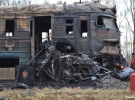 На Волыни электричка "Киев - Ковель" на переезде протаранила грузовик и протянула его несколько сотен метров. После этого оба транспортных средства вспыхнули, говорится в сюжете ТСН.