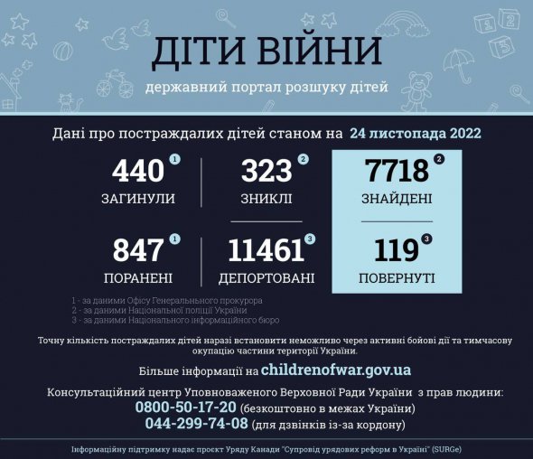 Такие данные располагают к утру 24 ноября ювенальные прокуроры. Их обнародовал Офис генерального прокурора в Telegram.