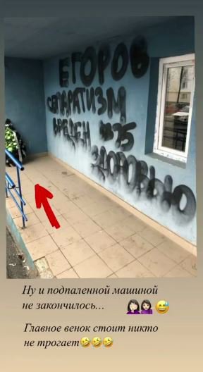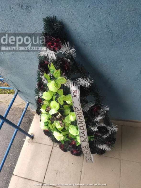 Известно, что на стене написали: "Егоров, сепаратизм вредит здоровью". Рядом лежал погребальный венок.