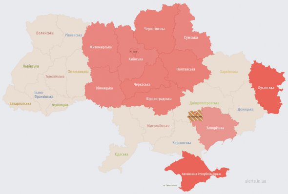 Карта тревог по состоянию на 01:32 выглядит так: