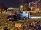 В Харькове водитель Mitsubishi Outlander на большой скорости протаранил Chevrolet Aveo и задел еще один автомобиль. От удара кроссовер развернуло боком, он врезался в бордюр и перевернулся.