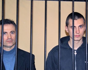 В это время под стенами суда как раз собрались сторонники осужденных Павличенко. До сотни людей расположились возле въезда на территорию суда. Имеют большой баннер "Свободу честным". Среди толпы много подростков. Традиционно их охраняет несколько десятькив милиционеров.