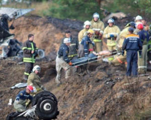 Самолет разбился в среду в 15.05 (по киевскому времени) в районе населенного пункта Туношна под Ярославлем, в 2,5 километрах северо-западнее аэропорта. Часть фюзеляжа упала в Волгу. По данным МЧС, на борту было 45 человек - 37 пассажиров и восемь членов экипажа. Двое (хоккеист Александр Галимов и бортпроводник Александр Сизов) выжили и находятся в тяжелом состоянии. В Росавиации сообщили, что самолет не смог набрать высоту и за пределами ВПП столкнулся с антенной маяка, после чего упал.