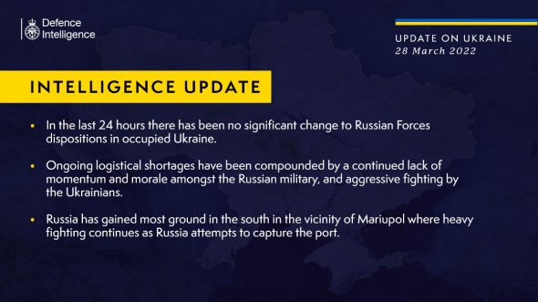 "Больше всего Россия завоевала позиций на юге в районе Мариуполя, где продолжаются упорные бои во время того, как Россия пытается захватить порт", - говорится в сообщении.