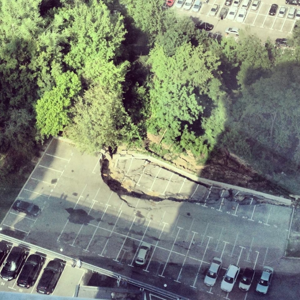 Как сообщает The Village, вследствие этого на парковке провалился асфальт.