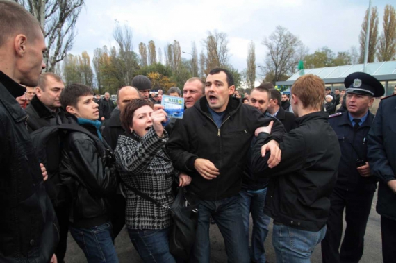 Около 9-ти утра возле новой станции метро "Ипподром", которую сегодня должен был открыть премьер-министр Украины Николай Азаров, произошло столкновение.