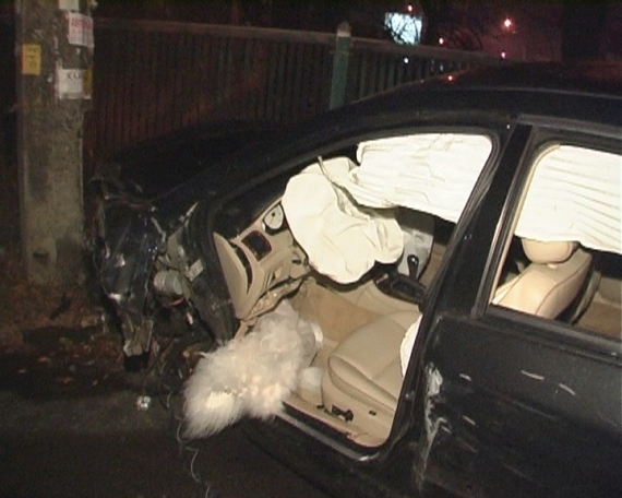 При такой головокружительной поездке, у "Пежо" оторвало колесо и отвалились передние дверцы. Водитель выпал на полпути. Сначала мужчина представлял из себя смельчака и по-геройски отказывался от помощи врачей. А где-то через полчаса ему стало плохо. Вызвали скорую. Врачи решили забрать его с собой. В больницу поехал и водитель "БМВ". Его машина от удара с неконтролируемым "Пежо" превратилась в металлолом. Мужчина очень травмировался.