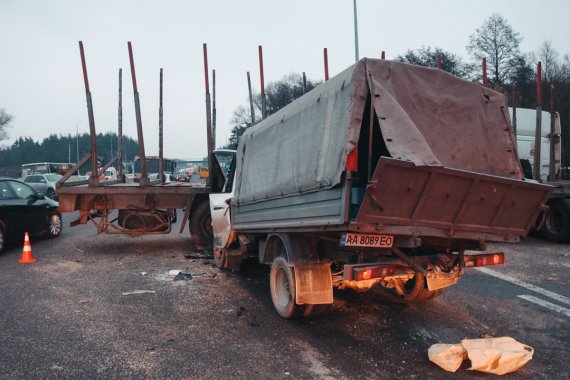 В результате столкновения были госпитализированы водитель и пассажир. Предварительно, они получили незначительные травмы. Из-за аварии на трассе в сторону Киева образовалась многокилометровая пробка - полуприцеп фуры перегородил 2 с 3 полос движения.
