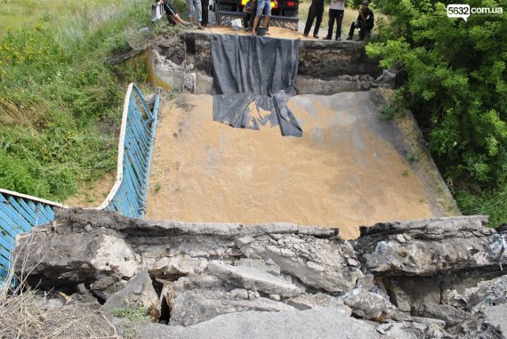 Вблизи села Новая Дача Павлоградского района Днепропетровской области под весом зерновоза обрушился мост. Конструкция треснула пополам.