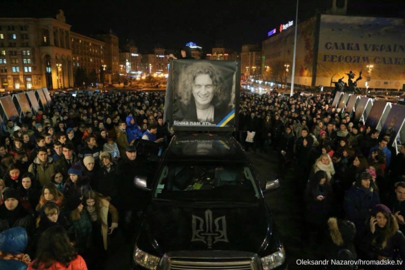 16 апреля в Киеве на улице Дегтяревская застрелили журналиста Олеся Бузину. Двое неизвестных подъехали к его дому и, когда тот вышел на пробежку, пять раз выстрелили в грудь и голову.