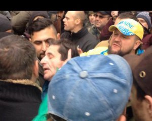 Толпа окружила его у входа в здание, началась потасовка. Шкиряк получил несколько ударов по лицу.