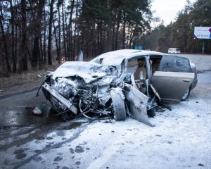 Audi ехал из Киева, а Mitsubishi - в столицу. Один из автомобилей выехал на встречку. Удар был такой силы, что машины задымились, сообщает Информатор.