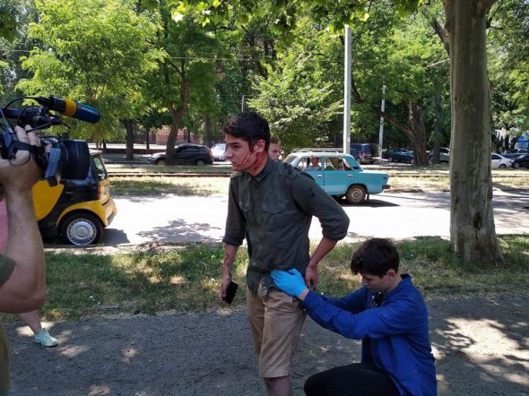 На Виталия Устименко с ножом напали двое мужчин спортивного телосложения, когда он выходил из редакции. Со слов потерпевшего, целились ему в печень, но неудачно. Активисту разбили голову и ранили ножом в живот.
