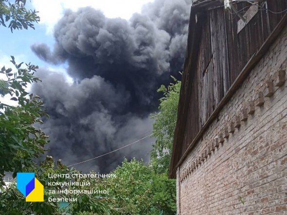 Еще один мощный взрыв прогремел около 11:25. После этого поднялся черный столб дыма.
