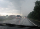 В частности, как сообщил корреспондент Gazeta.ua, на участке автодороги от Макарова (Киевская область) до Житомира прошел сильный ливень с мощными порывами ветра.