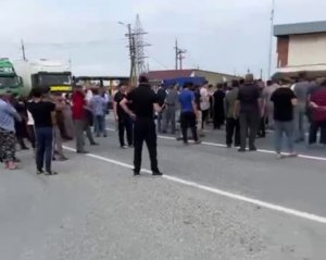 Протест прошел в Бабаюртисском районе. Люди ходили по дороге, пытаясь не пропустить грузовики и другой транспорт.