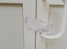 За ее спиной виднеются входные двери в здание, они закрыты. На них в нескольких местах наклеены бумажки с надписями "опечатано". Стекло на окнах корпуса грязное, через них разглядеть змей невозможно.