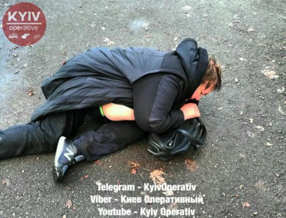 В одном из дворов на ул. Правды в Киеве пьяная женщина-водитель по требованию патрульных выйти из машины просто выпала из а нее.