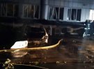 Днепровский район: в одном из домов жилого сектора в результате падения горящих обломков возникло сильное задымление, взрывной волной выбило окна. Зафиксировали падение обломков на административное здание. Есть поврежденные припаркованные автомобили, несколько единиц транспорта сгорели.