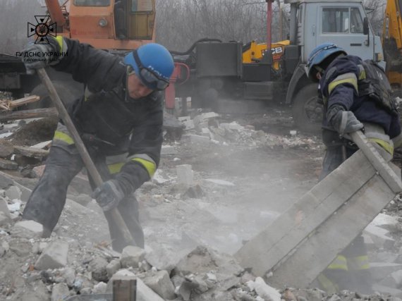 В результате атаки разрушен двухэтажный жилой дом. Под завалами которого и оказались мирные люди.