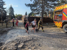 Спасатели транспортировали травмированных и передали бригадам экстренной медицинской помощи, кроме этого провели эвакуацию отдыхающих из очагов опасности. Чрезвычайники ликвидируют возгорание надворного сооружения, автомобилей и пяти очагов горения открытой территории.
