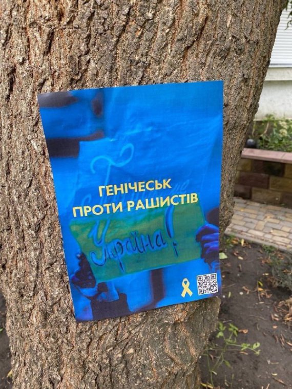 Тем временем жители Геническа устраивают оккупантам "теплую" встречу. В Telegram "Оперативный ВСУ" появились фото работы участников движения сопротивления "Жовта стрічка".