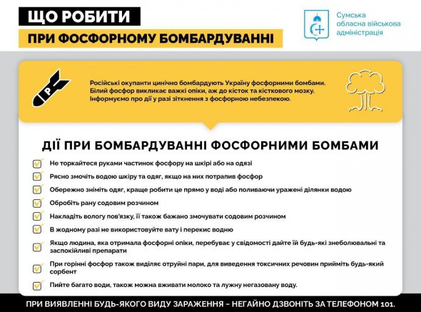 Также опубликовал инструкцию, что делать при вражеском обстреле фосфорными бомбами.