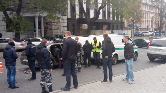 2 ноября около 12.00 в центре Одессы неизвестные обстреляли автомобиль Citroen, который врезался в машину инкассаторов.