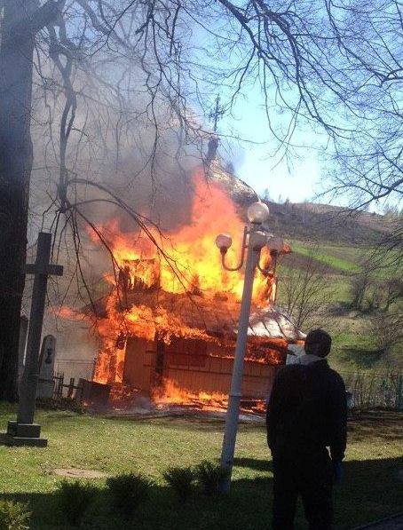 108-летнюю деревянную колокольню случайно сожгли жители села Грязной Долинского района Ивано-Франковской области.