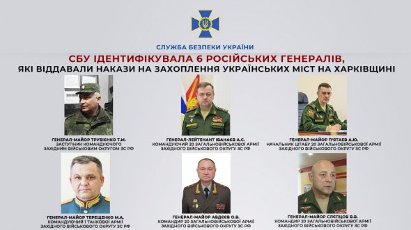Идентифицировали шестерых российских генералов, которые отдавали приказы на захват украинских городов в Харьковской области.