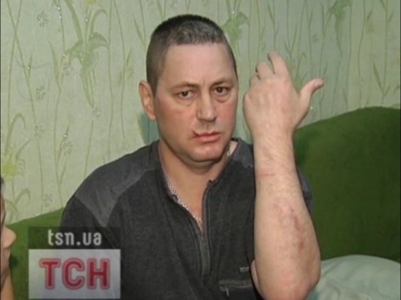 В квартиру ворвались 6-ро людей. Среди них были следователи и вооруженные бойцы "Беркута". Они надели на инвалида наручники и повалили его на пол. Потом его били по голове и завязывали жгутом запястья.