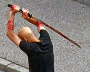 Свидетели говорят, что нападающий и жертва ссорились на улице. Тогда один из них достал меч и несколько раз ударил. Люди сняли нападение на видео, а потом вызвали полицию.