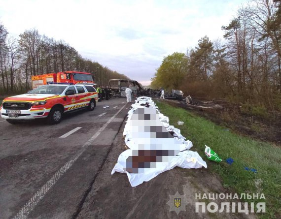 "Все погибшие пассажиры в возрасте 17-69 лет. Самому младшему 12 мая должно было исполниться 18 лет. Участники ДТП - жители Житомирской, Киевской, Черниговской, Харьковской и Хмельницкой областей", - добавляют в Нацполиции.