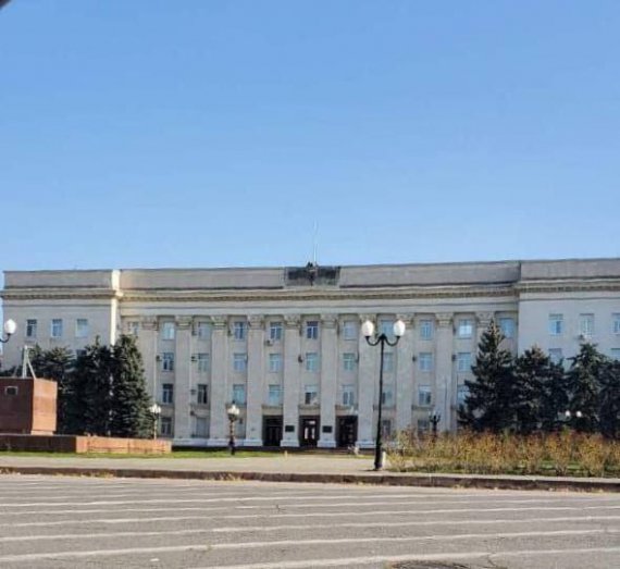3 ноября местные жители сделали фото, где здание ОГА уже без триколора. Об этом сообщил первый заместитель председателя Херсонского облсовета Юрий Соболевский в Telegram.