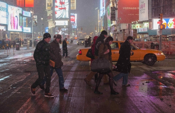 В Нью-Йорке буквально на всех перекрестках, даже в спальных районах, дежурят полицейские. Они в случае необходимости помогают автомобилистам, застрявшим в снегу.