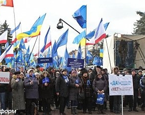 В Мариинский парк собирают сторонников Партии регионов. В настоящее время их более трех тысяч. Они выстраиваются колоннами перед входом за металлическое ограждение и заходят во внутрь группами.