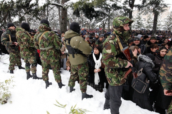 События в южноосетинской столице тем временем стали развиваться стремительно. Днем в Цхинвали прозвучали первые выстрелы: сотрудники правоохранительных органов открыли огонь в воздух, когда толпа сторонников борющейся за президентское кресло и победившей во втором туре Аллы Джиоевой пришла штурмовать центризбирком республики.