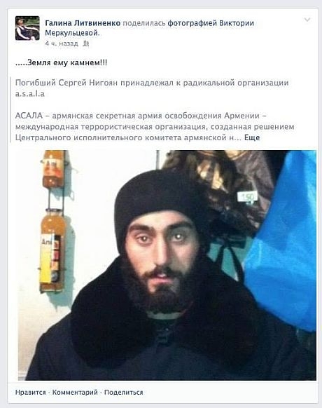Как известно, 22 января во время противостояния между силовиками и протестующими на улице Грушевского в Киеве застрелили 20-летнего армянина из Днепропетровска Нигояна. В милиции утверждают, что патроны, которыми убили активиста, на вооружении милиции не находятся.