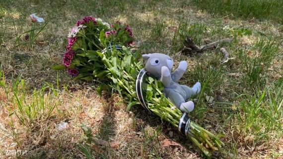 В Киеве люди принесли цветы и игрушки к детской поликлинике №3 в Деснянском районе, где ночью погибли две матери и девятилетняя девочка.