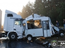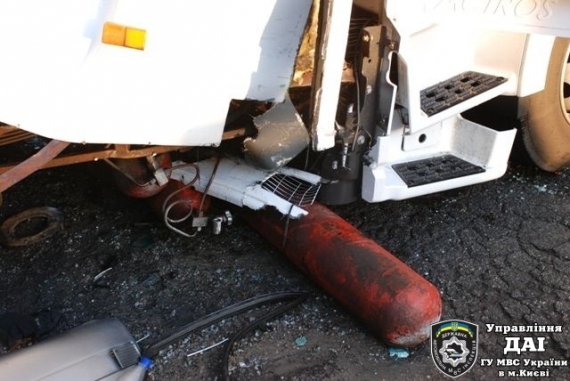 Водитель фуры (гражданин Турции) не справился с управлением и совершил столкновение с микроавтобусом "ГАЗель" (стоял на обочине без пассажиров) и автобусом "Мерседес". Вследствие дорожно-транспортного происшествия 10 пассажиров автобуса пострадали, которые с травмами разной степени тяжести госпитализированы в больницы. Об этом рассказали в пресс-службе ГАИ Киева.